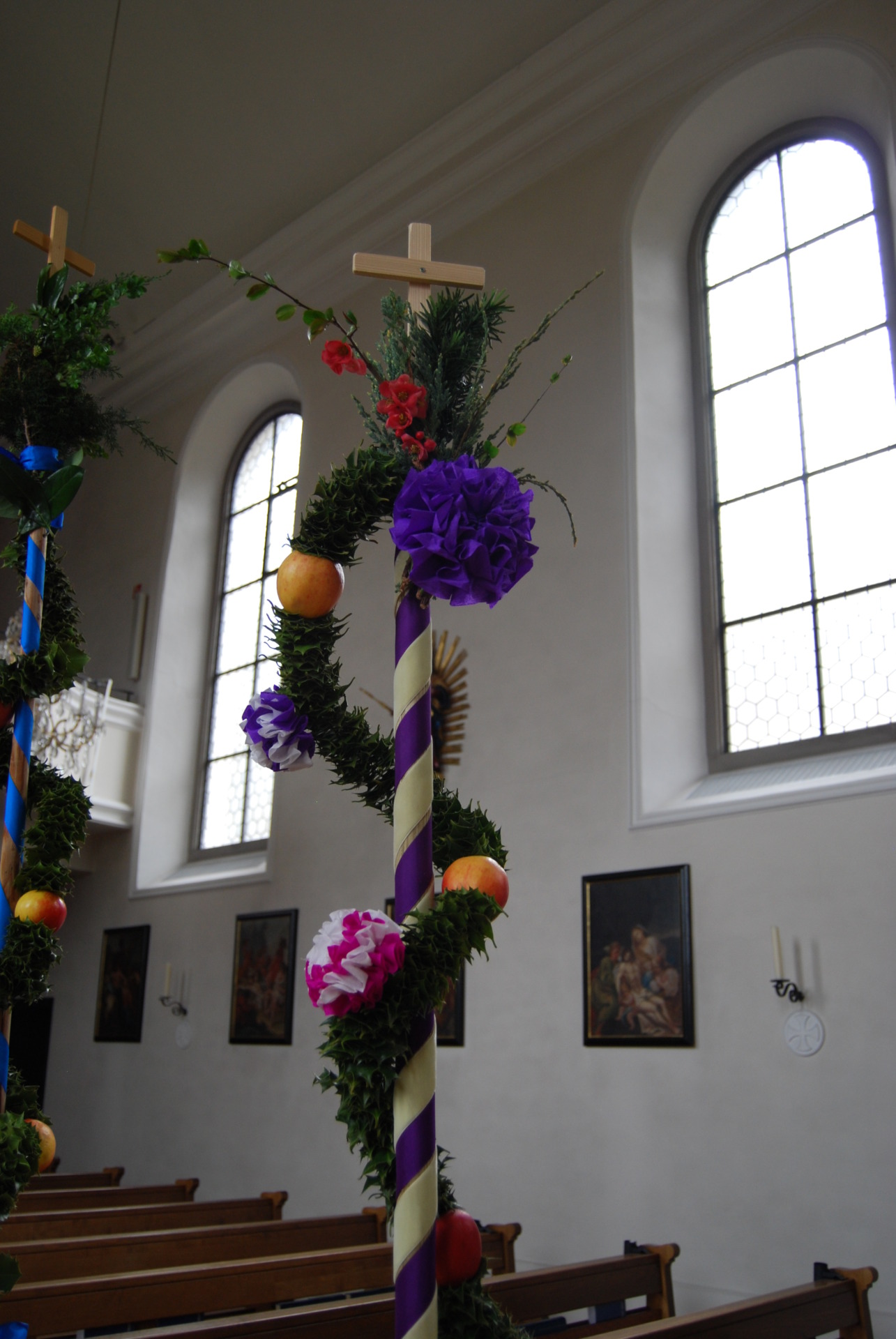 Um 9.30 Uhr wurden zu Beginn der Feier nach einem Gebet die Palmen und Blumenkörbchen von Seelsorger Ante Sviraċ gesegnet. In einer kleinen Prozession wurden die Palmen anschliessend feierlich durch die Kirche getragen.